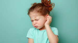 A mastoidite clínica, ela se manifesta através de vermelhidão atrás do ouvido, nessa região da mastóide, um inchaço ali, a orelha fica mais de abano e é um quadro potencialmente mais grave, no qual a criança costuma ficar mais, a gente chama de toxemiada, o estado geral piora, a febre tende a ser mais alta, o quadro de dor é mais intenso, geralmente o ouvido começa a supurar, é um quadro mais grave.